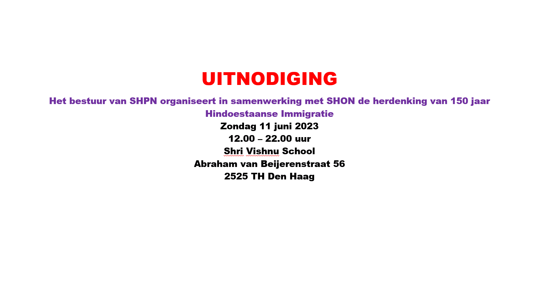 Namens de vereniging Sanatan Hindoe Parishad Nederland (SHPN) en de stichting Hindoe Onderwijs Nederland (SHON).